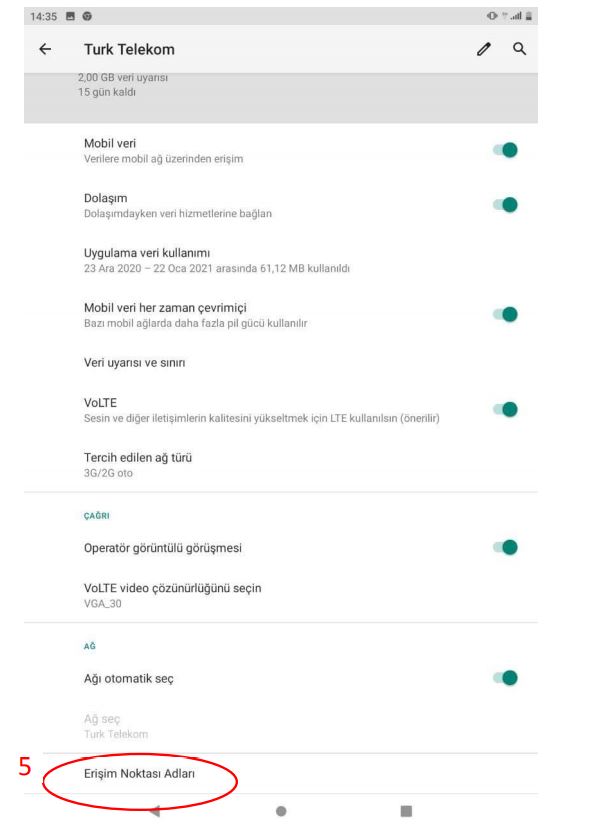 “Erişim Noktası Adları” kısmına tıklayalım.meb aidata mobil veri aktif etme 5